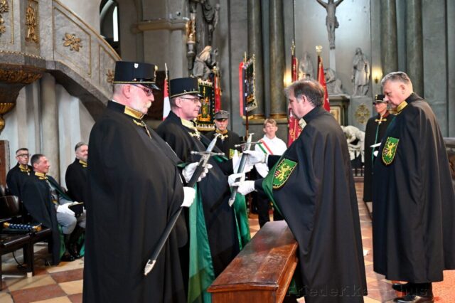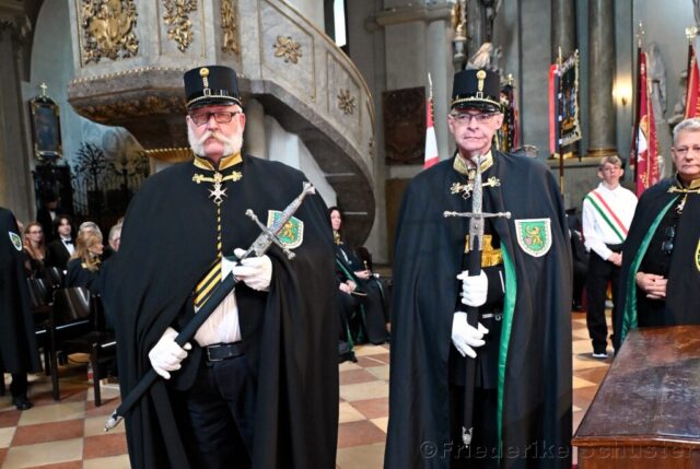 Besonders eindrucksvoll gestaltete sich die Überreichung der Insignien: Die Säbel für die Garde wurden mit feierlicher Würde ausgehändigt, und die Insignienschwerter [ Replikaschwerter aus dem spanischen Toledo „CARLOS V.“ von Karl V. von Habsburg (24.02.1500 – 21.09.1558), dem ersten spanischen König. ] gingen in ehrvoller Geste an den Großprior der Schweiz, Ritter Fabian Coulot, sowie an den Großprior von Österreich, Ritter Christian Gajsek.