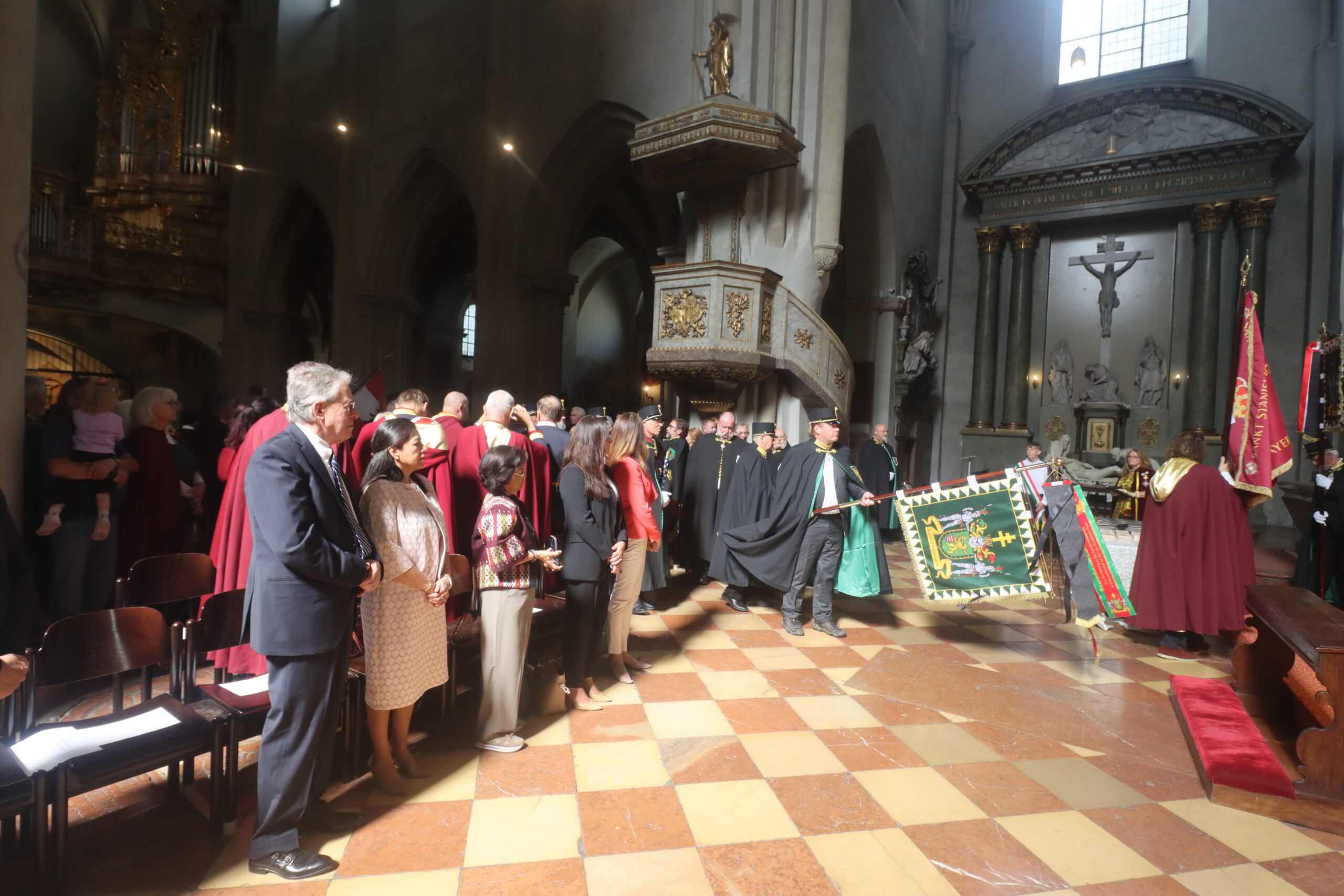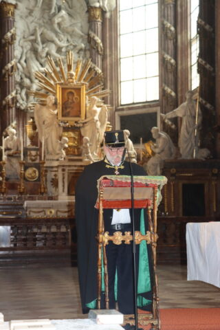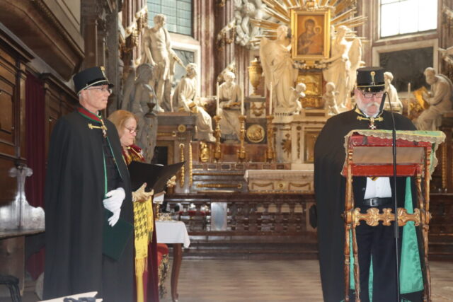 Schon der Einzug der Fahnen- und Würdenträger, angeführt vom Großmeister Erzherzog Sandor von Habsburg-Lothringen, dem Großkanzler Prof. h.c. Robert Jordan und dem Großmarschall Ing. Dr. h.c. Harald Sauer, verlieh der Zeremonie eine beinahe majestätische Eröffnung. Die bunten Banner, das langsame Schreiten und die würdevollen Insignien erinnerten an vergangene Jahrhunderte ritterlicher Tradition und erfüllten das Kirchenschiff mit einem Hauch von Geschichte.
